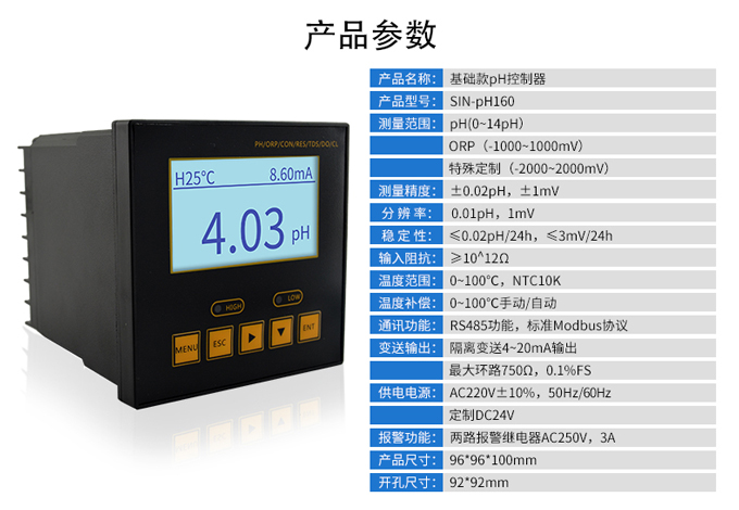 SIN-pH160是工業(yè)pH計,是工業(yè)酸度計的智能化升級產(chǎn)品,可對污水pH值進行連續(xù)測量和控制。