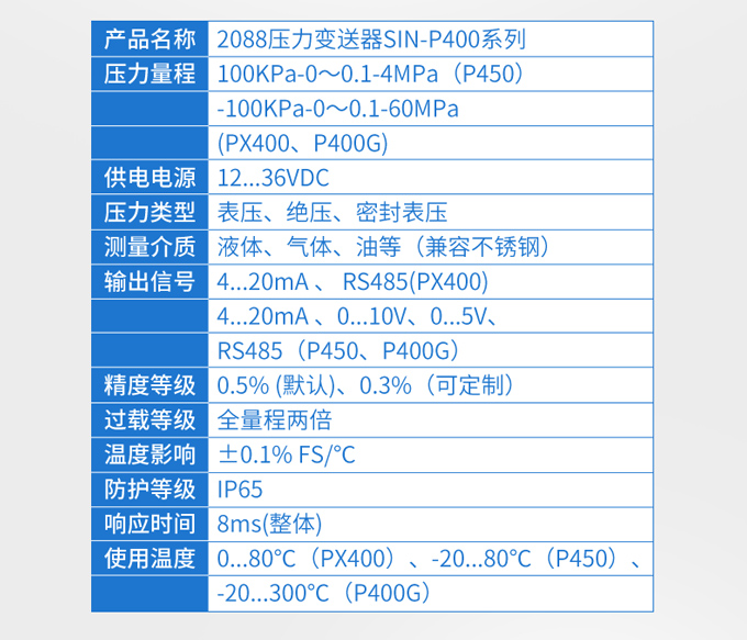 應(yīng)用行業(yè):SIN-P400的2088殼體防護(hù)壓力變送器廣泛應(yīng)用于恒壓供水、液壓設(shè)備、消防水以及化工行業(yè)。