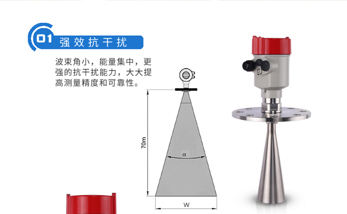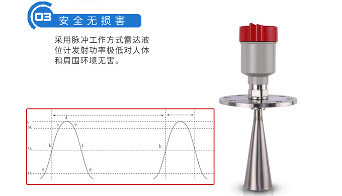 雷達(dá)液位計(jì)天線發(fā)射及窄的微波脈沖,這個(gè)脈沖以光速在空間傳播,遇到被測(cè)介質(zhì)表面,其部分能量被反射回來(lái),被同一天線接收。發(fā)射脈沖與接收脈沖的時(shí)間間隔與天線到被測(cè)介質(zhì)表面的距離成正比,多用于水位、料位與化工場(chǎng)合。